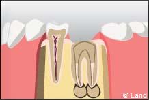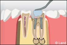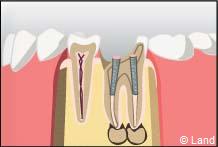 Les dents dépulpées doivent être impérativement reconstituées avec un matériau adapté associé à des tenons dans la racine ou par un « inlay-core » ou « faux moignon» afin d’étanchéifier le soin et de pouvoir recevoir une couronne.