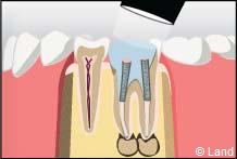 L’inlay-core est une reconstitution métallique coulée qui restaure en partie la couronne naturelle de la dent. On utilise comme points d’ancrage les canaux radiculaires précédemment obturés lors du traitement conservateur.